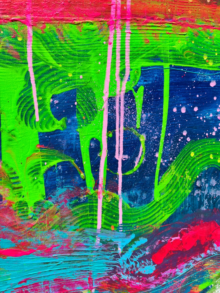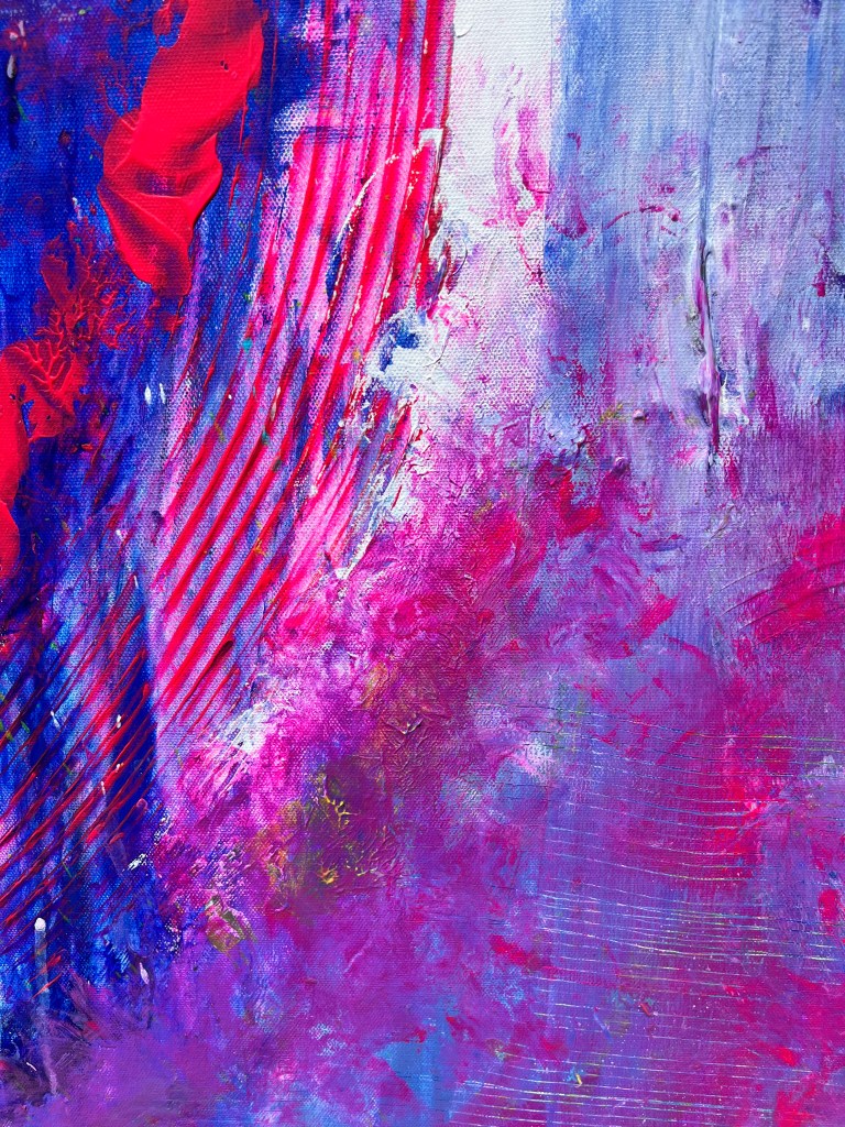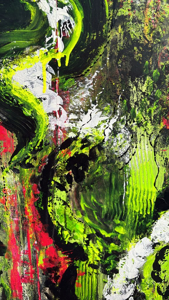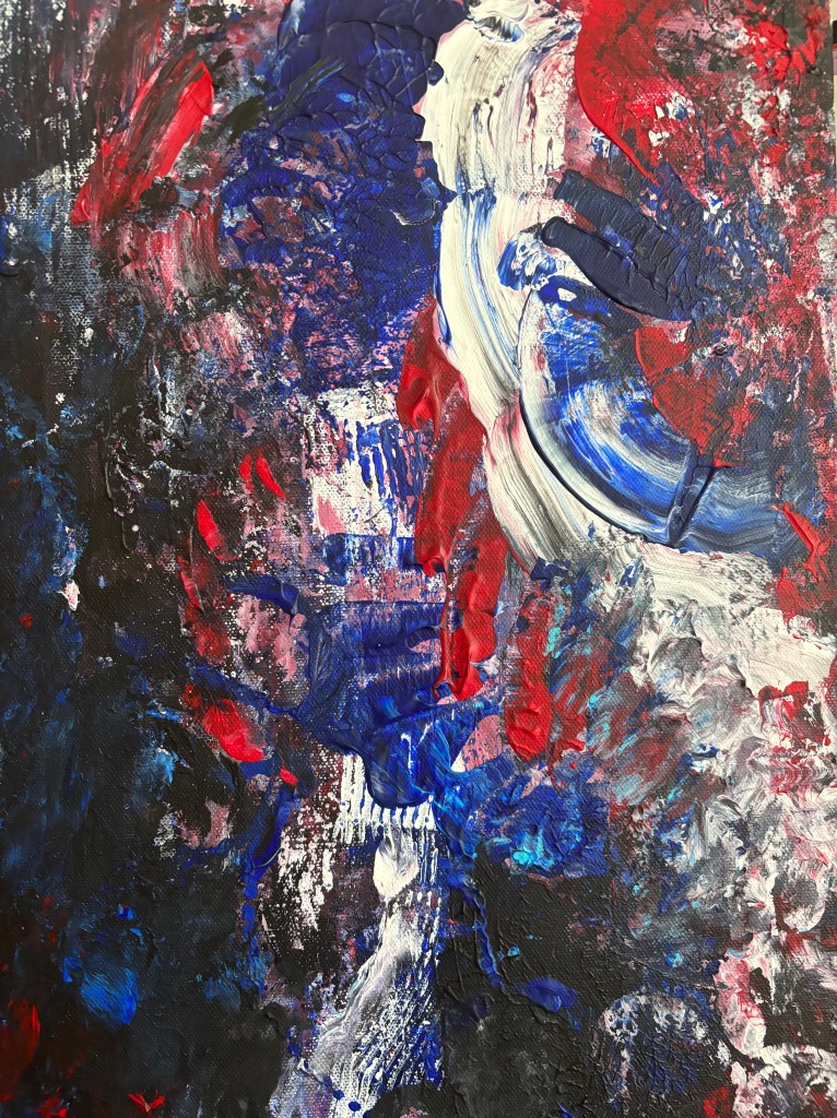 My art is a constant experiment in how much texture I can get onto a canvas using just acrylic. The paint has a mind of its own most days—and I just try to keep up. Nothing’s clean, nothing’s planned. It’s unhinged, hands-on, and unapologetically messy. I scrape, slam, drag, and layer until I either can’t stand to look at it anymore or decide it’s done… for now. Some pieces come back to life months later with another layer or three—because nothing ever feels totally finished. Some days, it clicks; some days, it’s one step away from the trash—but that’s the point. The goal is texture with intention—raw, chaotic, and barely holding together in the best way.