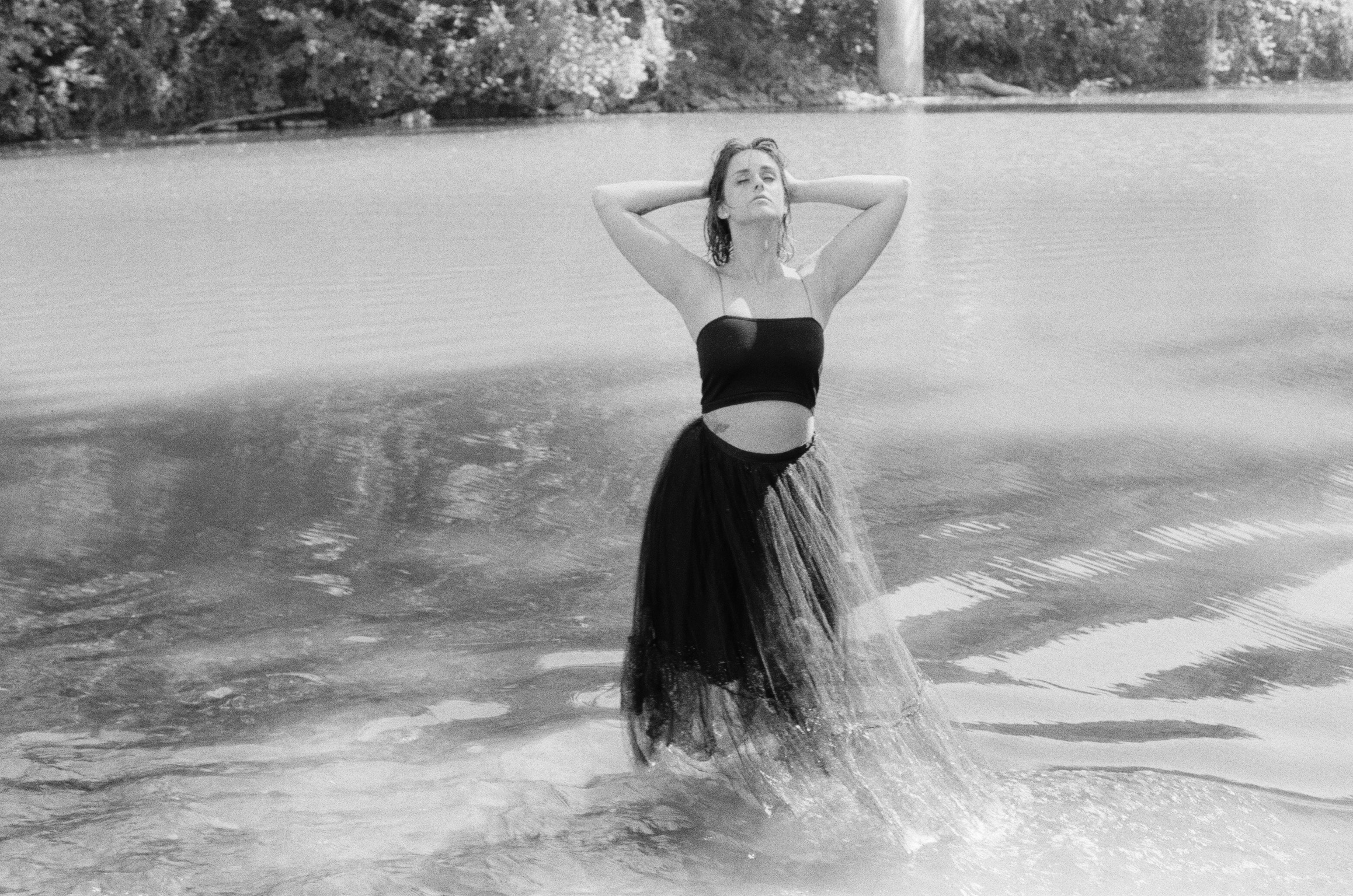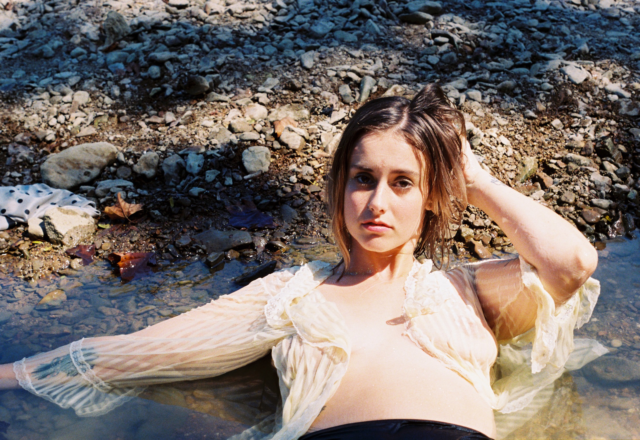 Jess and I are both creek babies. Needless to say, when we decided to do this shoot, we were both ecstatic. Jess serves up major river nymph vibes, and we had a blast capturing these images. Fun fact: while shooting these pics, two elderly folks kept trying to canoe beside us.